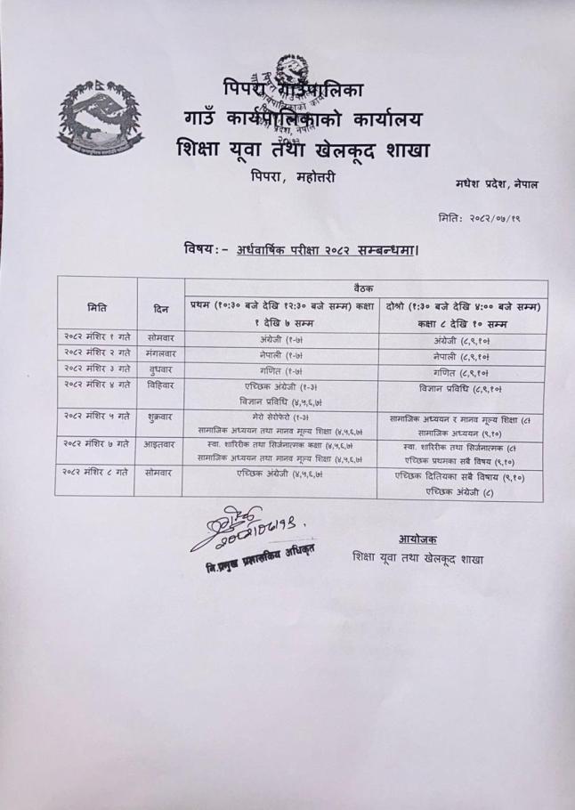 » अर्धबार्षिक पारिक्षा तालिका
