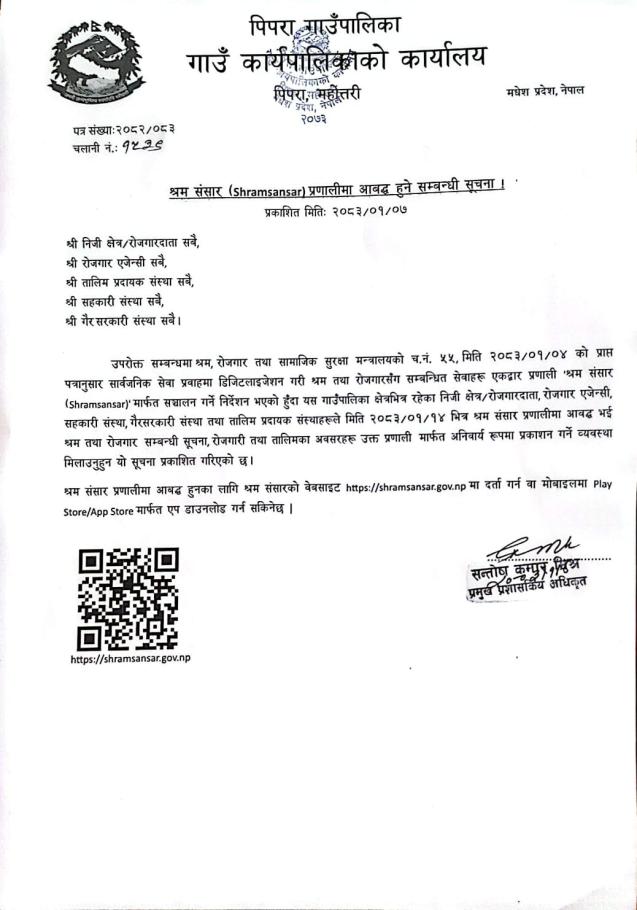 श्रम संसार (shramsansar) प्रणालीमा आबद्ध हुने सम्बन्धमा ।