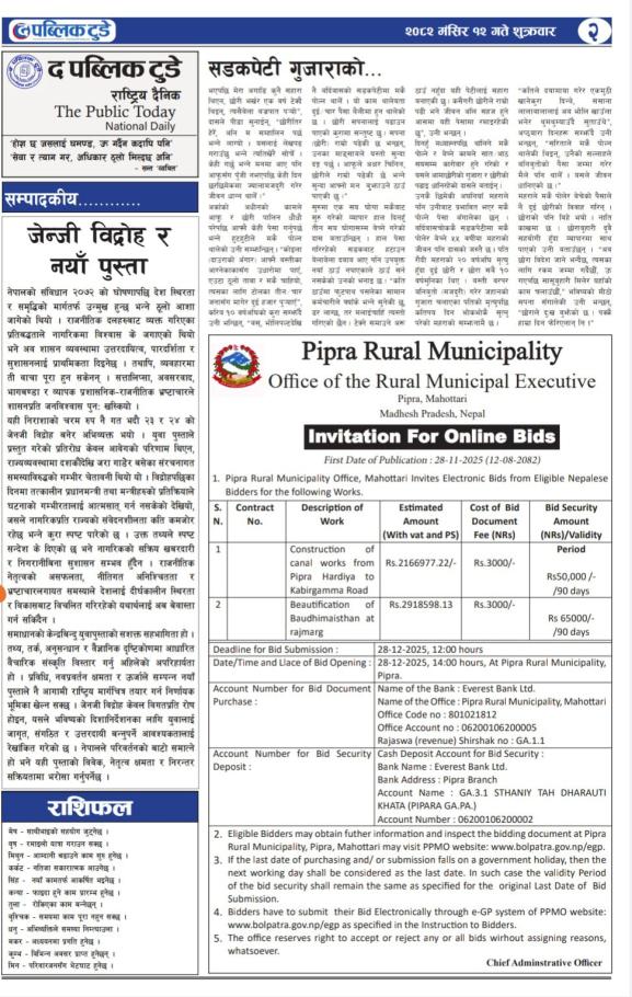 सार्वजनिक खरिद/बोलपत्र सूचना
