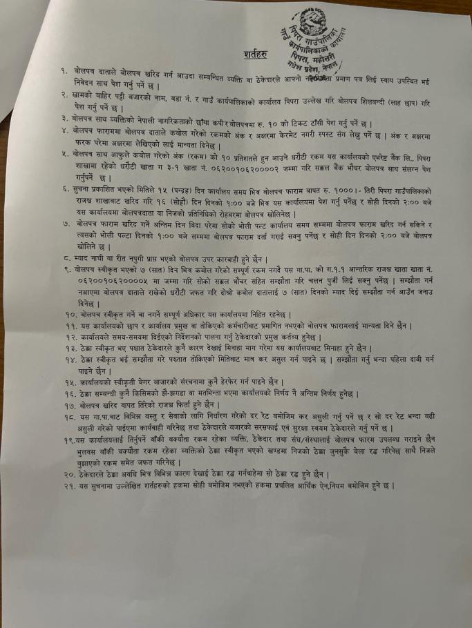 » पिपरा हाटबजार ठेक्का समबन्धमा